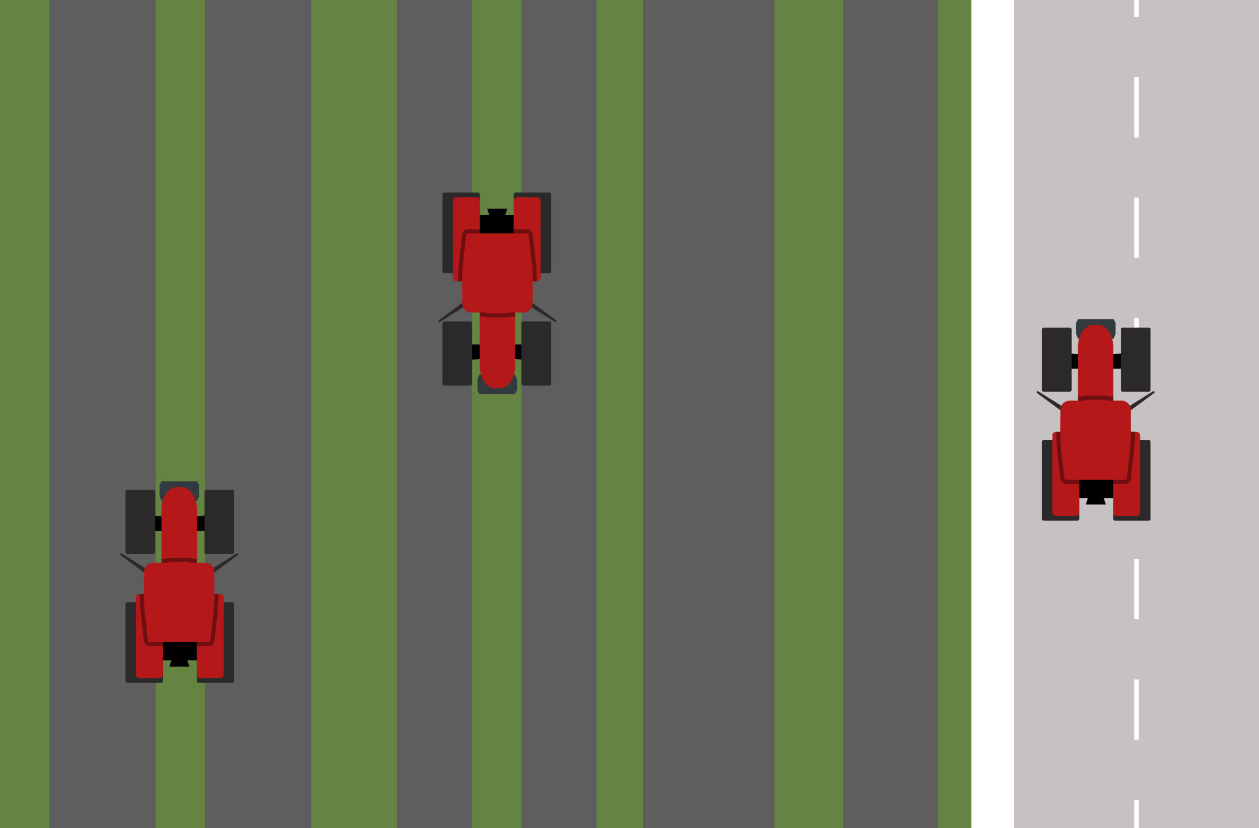 - Direção de deslocamento transversal no campo / longitudinal na estrada